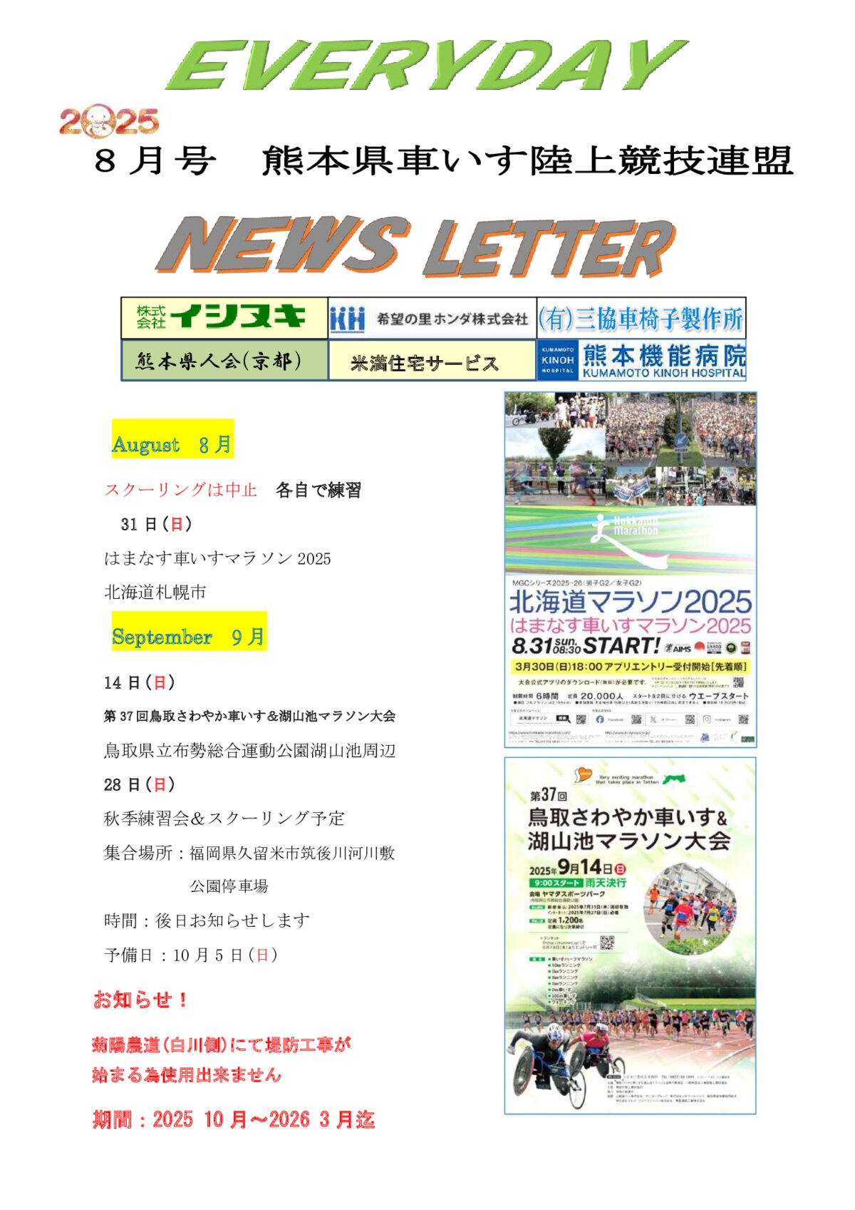 熊本県車いす陸上競技連盟NEWS LETTER 2025年8月号 トピックス X Facebook はてブ LINE Pinterest コピー 2025.08.162025.12.18 大会、イベント等の予定を掲載しております。